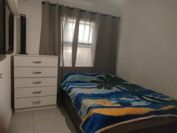 The main bedroom opens out to the patio which has a gas braai and the garden.