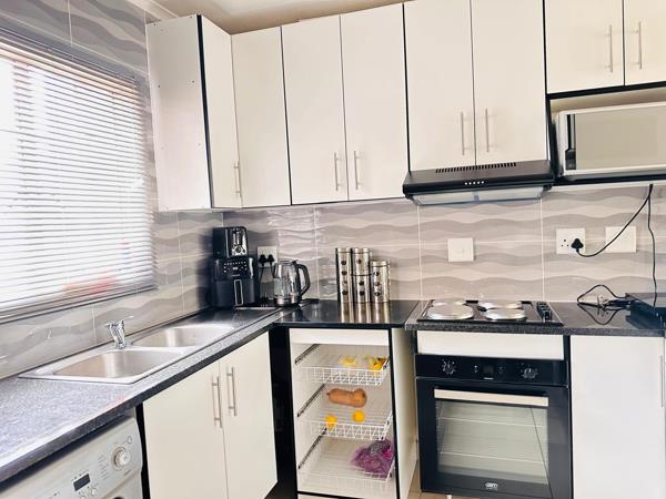 This modern 2-bedroom, 1-bathroom apartment in Castleview, Germiston, offers comfortable and convenient living within a well-maintained complex. The unit features an inviting open-plan layout, seamlessly connecting the living, dining, and kitchen areas.