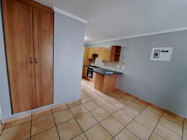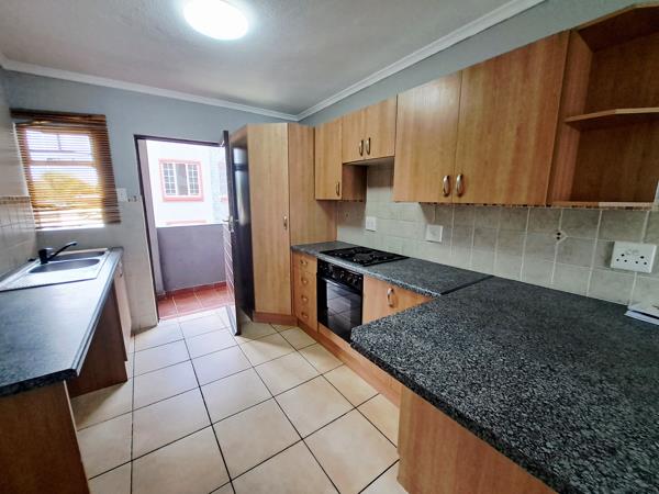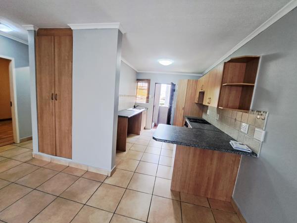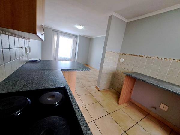 Welcome to this lovely unit situated on the upper floor of a very sought after and secure Estate - Comprising of a tiled entrance leading into a neat open plan kitchen with ample built in cupboards, breakfast nook and a washing machine connection, well sized and tiled lounge leading to 2 laminated bedrooms with built in cupboards and 1 full bathroom. Linen cupboard for extra storage space.This unit comes with 1 single undercover parking and visitors parking as well.
