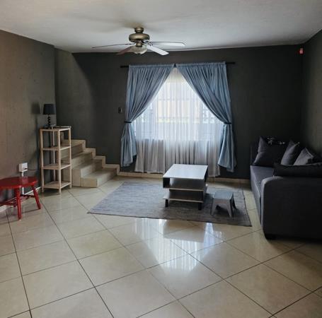 2bedrooms,1.5 bathroom ,living room, Kitchen and 2 double garage. Large verandah. This charming double story sectional title unity offers comfortable living and idealfor proffessional,couple or small family. Bright open plan kitchen and living area. Prepaid electricity and water included . Solar,poop and Wi-fi.No pets allowed. Built in wadrobes and cupboards.