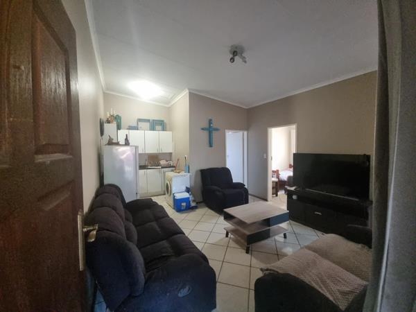 The unit offers an open-plan lounge and kitchen, a bathroom, and a small private gardenideal for relaxed outdoor living. Residents also enjoy access to a communal swimming pool within the complex.