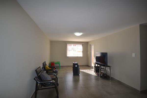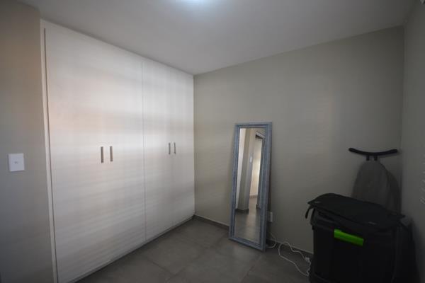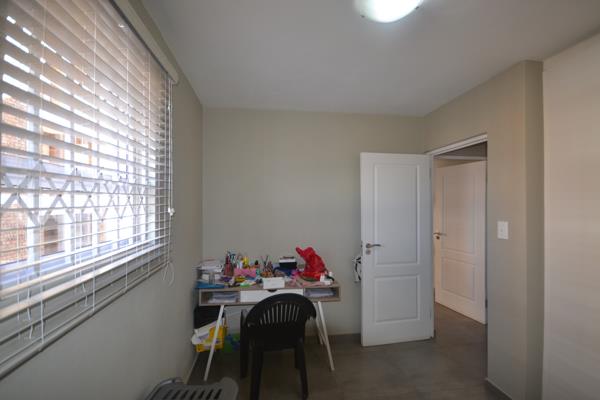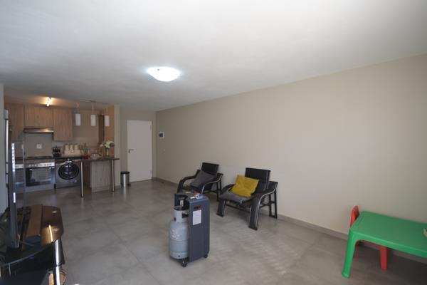 The living area is open plan with the modern kitchen and opens up onto a veranda closed with Trelidor security. There is a storage cupboard on the veranda for those extras you do not have space for and a beautiful big grass yard for relaxing and for your little one to run around.