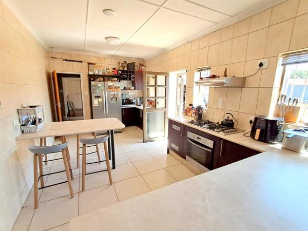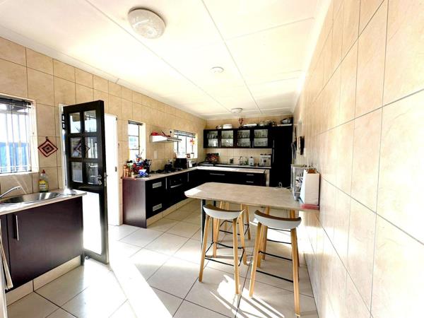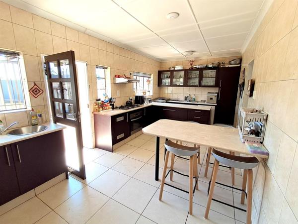 A double tandem garage with built-in cupboards and access straight to the kitchen, Rollup automated garage door and automated front gate. Fully walled property with electric fence and excellent burglar bars.