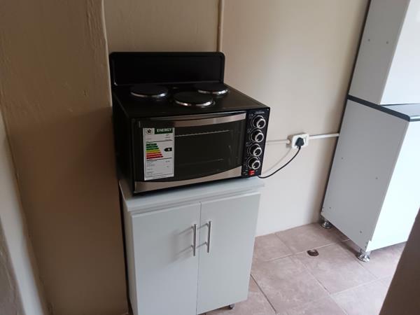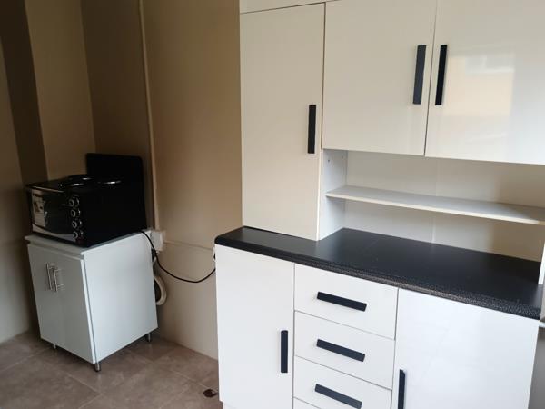 This charming 1-bedroom, 1-bathroom rental property in Lambton Gardens offers a comfortable and secure living space, ideal for a single professional or a couple. Spanning 70 square metres, the home features a bright, freshly painted yellow exterior with contrasting black trim and modern black-framed windows, creating an inviting first impression. Inside, the layout includes a dedicated lounge area and a well-appointed kitchen. The kitchen boasts modern white cabinetry, dark countertops, and an integrated electric ovenstove, complemented by practical tiled flooring, providing an efficient and stylish space for daily meal preparation.