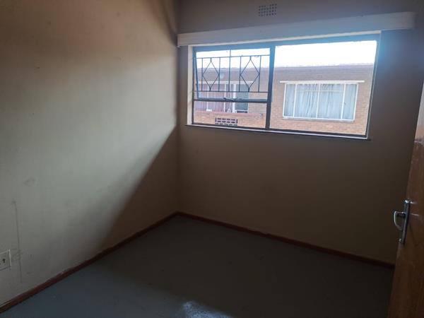 This spaceous flat has 2 bedrooms, 1 bathroom, a lounge and a kitchen. There is secure, covered parking single. Included in listing price is the parking fee, sewerage and refuse removal. Conveniently located.