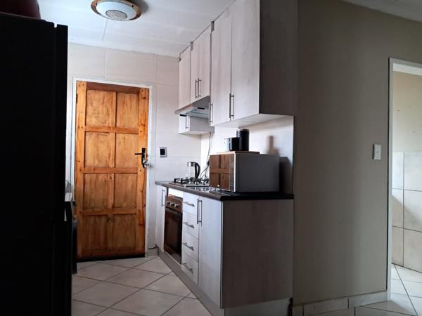 The kitchen is thoughtfully designed with built-in cabinetry, a gas stove, and tiled flooring for effortless upkeep. Electricity is prepaid for added control over your usage, while water is billed at a fixed monthly fee of R200. Complimentary WiFi is included limited to three devices, adding extra value and convenience.