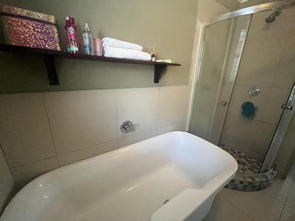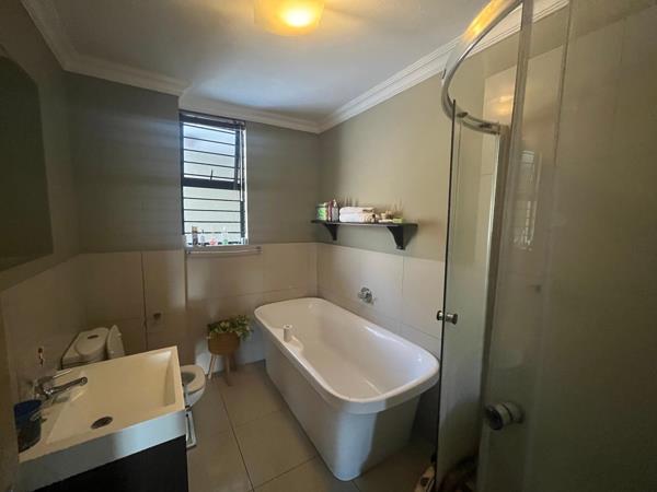 Both bedrooms are well-sized with built-in cupboards, while the full bathroom is fitted with both a bathtub and a separate shower for added convenience.