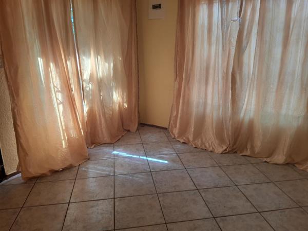 Outside, a secure brick wall surrounds the property, enhancing privacy and safety. The carport provides double parking, ensuring easy access for multiple vehicles. With features such as steel windows and plaster walls, the home blends durability with aesthetic appeal. Additional conveniences include curtain rails and the availability of fibre for high-speed internet access.