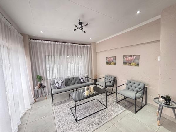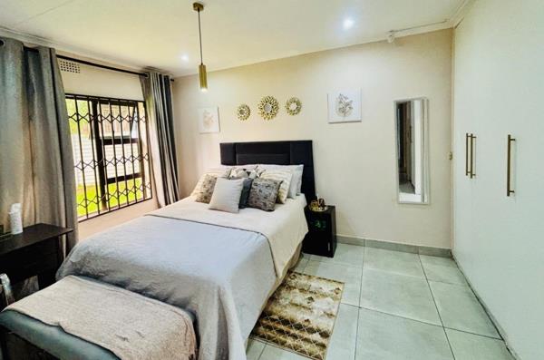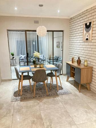 Featuring 3 dreamy bedrooms with built in cupboards, 2 clean bathrooms- main en suite, modern kitchen, comfortable living areas, refreshing swimming pool with a braai area and boma, neat garden. double garage and carport.