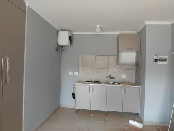 New spacious bachelor room with kitchen cupboards, wardrobe, own bathroom, own geyser, remote gate, gated community.