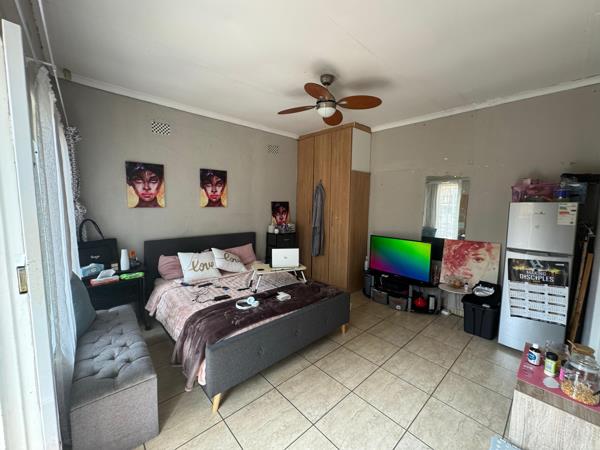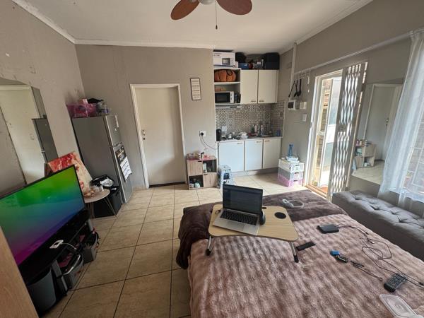 It features a kitchenette with cupboards, extractor fan and a 2 plate electric stove. It has a shower , basin and toilet. Also a 50 litre geyser.