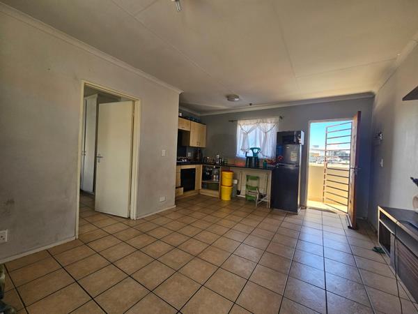 This 1-bedroom, 1-bathroom apartment is situated in the secure Ibis Estate in Esther Park. The unit offers a functional kitchen and lounge area that leads out to a private balcony, providing a comfortable living space.