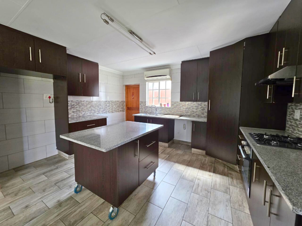 This property offers 3 bedrooms, 2 bathrooms, an open-plan lounge and dining area, and a modern kitchen complete with a centre island and gas stove. The enclosed entertainment area with a built-in braai flows seamlessly to a beautifully kept garden featuring a sparkling swimming pool. Additional conveniences include a double garage and double carport.