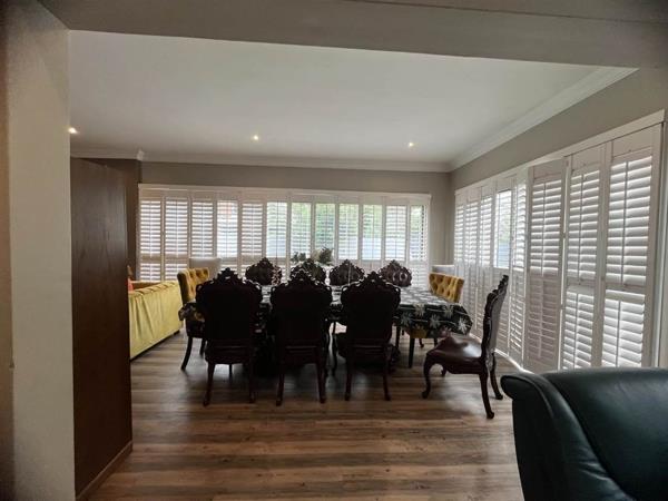 The home boasts spacious open-plan living areas that flow effortlessly from the sleek, modern kitchen to the dining and family rooms. Large stacking doors open onto a covered entertainment patio complete with a built-in braai, creating a seamless connection between indoor and outdoor spaces. The sparkling swimming pool and expansive garden provide the perfect setting for family fun and weekend entertaining, while the estates peaceful surroundings ensure a safe and serene environment for all.
