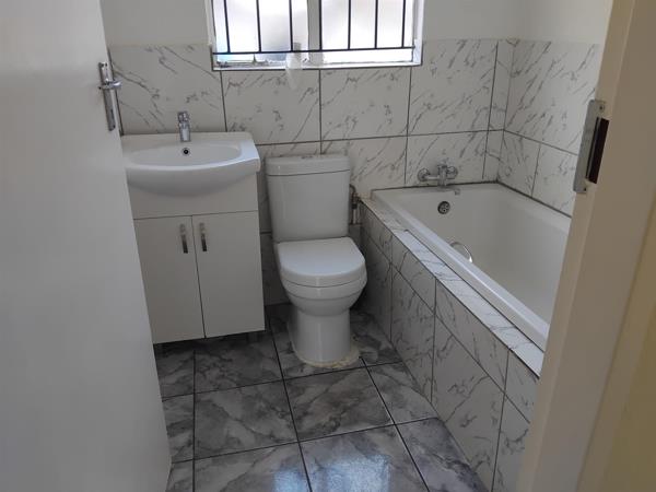 Two bedroom House with kitchen, 2 spacious bedrooms with cupboards. 2 Bathrooms with bath tub and shower In a secure yard with secure gate. close to good schools and the highway.