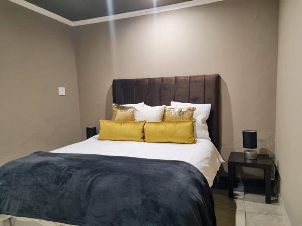 Welcome to a stunning fully furnished 1 Bed 1 bath Apartment located in a well maintained Rhodesfield Kempton Park 4.2km from O. R Tambo, 3.5km Festival mall, 3.2km Arwyp Medical Centre, 4.5km Emperors Palace and 3.5km from Croydon business district.