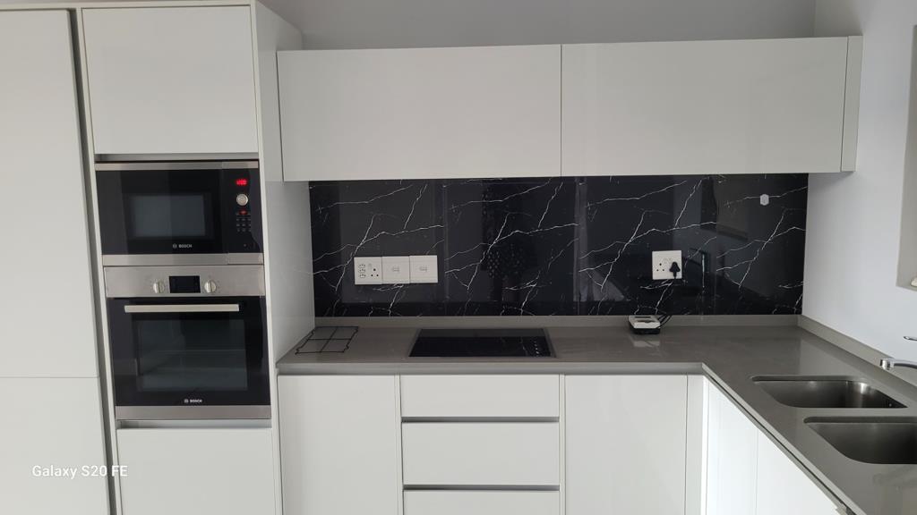 The bedrooms are adorned with glossy cupboards, while the bathrooms showcase beautiful modern finishes. The well-appointed kitchen is a culinary haven, featuring sleek gloss cupboards and Caesarstone countertops.