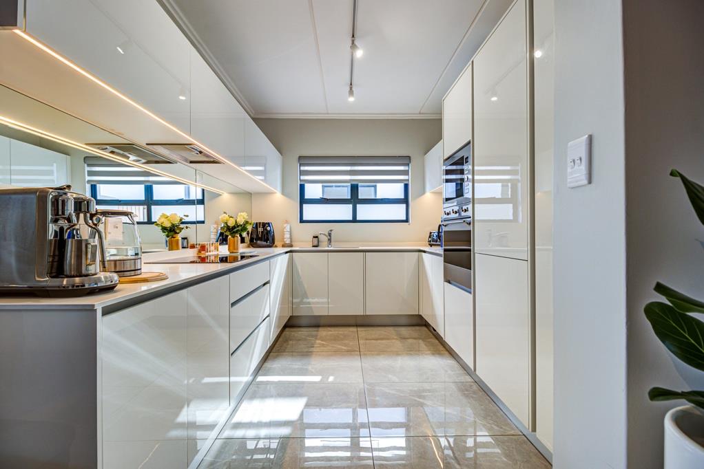 The kitchen is a chef''s dream, equipped with sleek Caesarstone countertops and soft-touch, handle-free cabinetry. You''ll find top-of-the-line Smeg appliances, including a fridge-freezer, microwave, dishwasher, washing-drying combo, and oven, ensuring every culinary need is met.