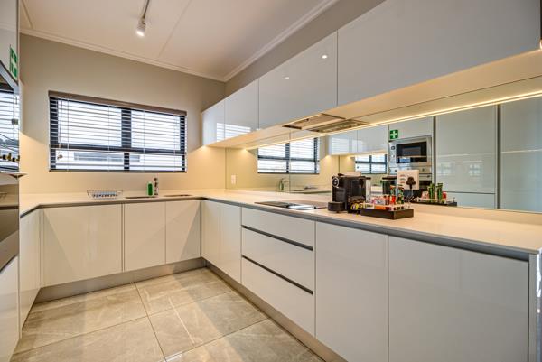 The living area leads onto a covered balcony where a built-in gas braai creates the perfect space for relaxed weekends or easy entertaining. The development is supported by a back-up generator, so load-shedding wont interrupt your comfort.