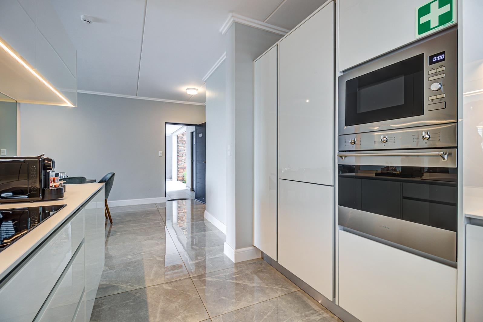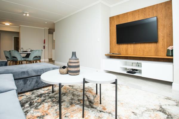 This stylish first-floor three-bedroom unit in the prestigious Serengeti Estate offers effortless modern living in a secure and beautifully maintained environment. From the moment you walk in, the open-plan kitchen and living area set the tone with immaculate finishes, including sleek Caesarstone countertops and soft-touch, handle-free cabinetry. The kitchen is fully fitted with premium Smeg appliancesa fridge-freezer, microwave, dishwasher, washing-drying combo, and ovenmaking everyday life wonderfully convenient.