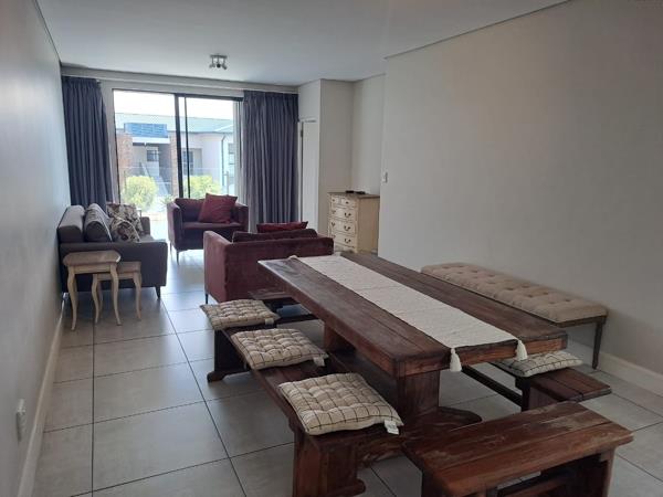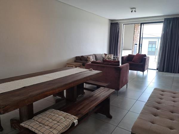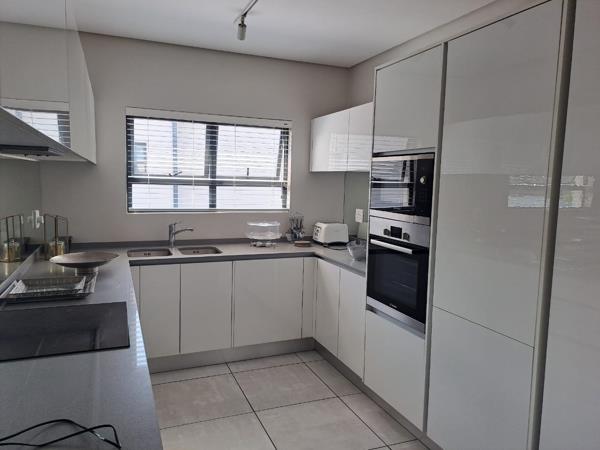 This charming first-floor apartment offers 3 bedrooms and 2 bathrooms, including a main bedroom with an en-suite and a second family bathroom. The lovely kitchen features Caesarstone countertops and high-end Bosch appliances, including an oven with glass-top stove, fridgefreezer, microwave, dishwasher, and washerdryer. It also boasts a spacious open-plan dining and living area with sliding doors leading to a covered balcony. The patio or balcony comes complete with a gas braai for relaxed entertaining. 2 x Covered parking spaces and sufficient guest parking available. The Estate offers egress and access control, paddle courts, communal pool, gym, golf club with golfing ameneties, deli, take away and restaurant. Many off road biking routes, walking trails and biking trails, this is a lifestyle second to none. Call me to view. Available 1 March 2025