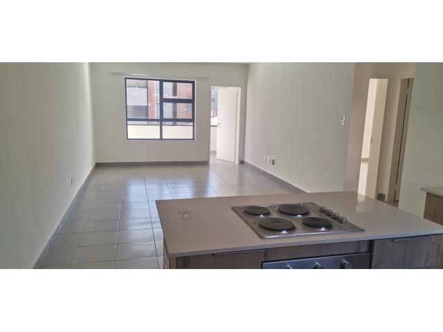 Open plan kitchen with an island and lounge area, lots of cupboards