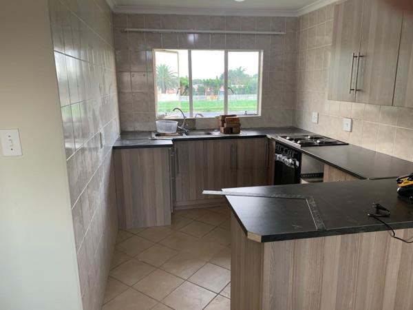 Discover comfortable living in this modern 2-bedroom, 1-bathroom unit, ideally situated within a secure gated community in Terenure, Kempton Park. Spanning 75 square metres, this residence offers an open-plan layout designed for contemporary lifestyles. The heart of the home is its newly installed kitchen, featuring sleek wood-grain cabinetry, dark countertops, a convenient double sink. A large window above the sink ensures ample natural light, creating a bright and inviting culinary space.