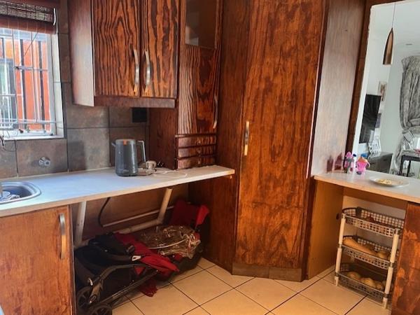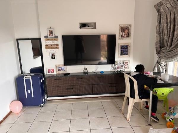 Discover this inviting 2-bedroom, 1-bathroom rental property located within a secure complex in Terenure, Kempton Park. The interior boasts a functional layout, featuring a comfortable lounge area and a well-appointed kitchen. The kitchen, equipped with extensive dark wood cabinetry and a convenient pass-through, seamlessly connects to the living space, promoting an open-plan feel. The modern bathroom is a highlight, showcasing sleek marble-look wall and floor tiles, a contemporary wall-mounted sink, and a glass partition for the shower, offering a clean and updated aesthetic. Tiled flooring extends throughout the home for easy maintenance, and a single garage plus an additional parking bay provide ample space for vehicles.