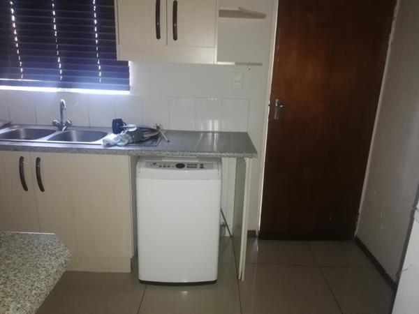 The unit is tiled throughout, 2 Spacious bedroom with built in cupboards and a full bathroom bath and shower.