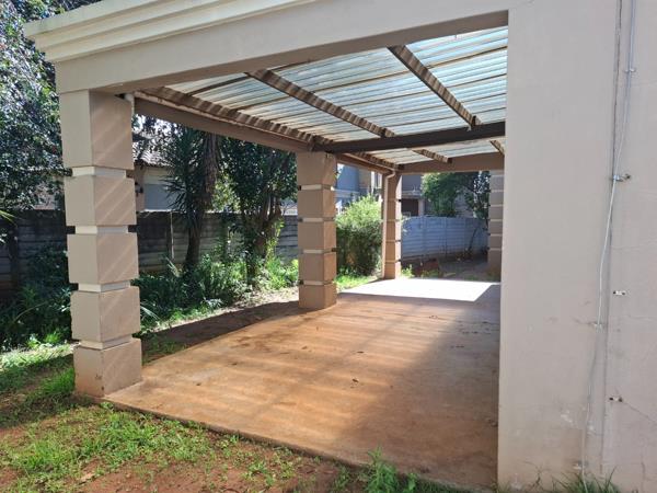 The residence boasts practical amenities including a detached double garage and an extensive covered carport, ensuring generous parking for up to six vehicles. The large 900 sqm erf provides a sense of space, complemented by a private patio perfect for outdoor enjoyment. Pets are welcome, making it an ideal choice for families.