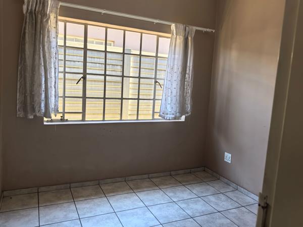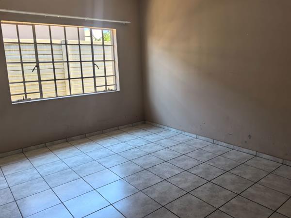 Spacious garden cottage house!. This spacious garden cottage house is situated on premises that shares the grounds with 3 other units. It offers 3 bedrooms, 2 bathrooms, open plan lounge and kitchen. Covered parking for 1 vehicle. Prepaid electricity, water account extra for the tenant monthly. NO PETS ALLOWED. NO garden. Available immediately.