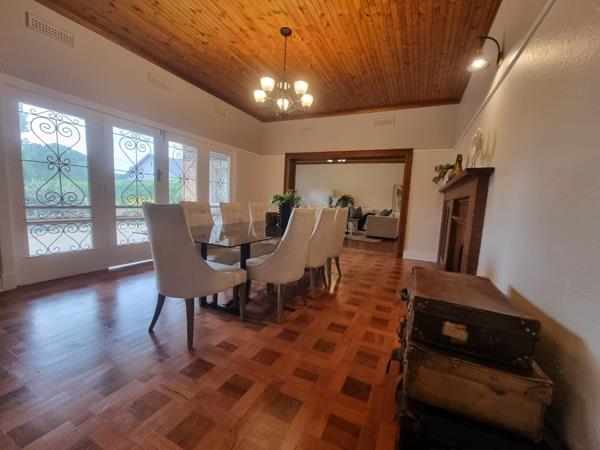 The interior features three distinct lounge areas, providing versatile spaces for relaxation and entertainment, alongside a dedicated dining room perfect for family meals. The well-appointed kitchen includes a convenient pantry, catering to all your culinary needs. For added convenience, the property also benefits from a guest toilet.