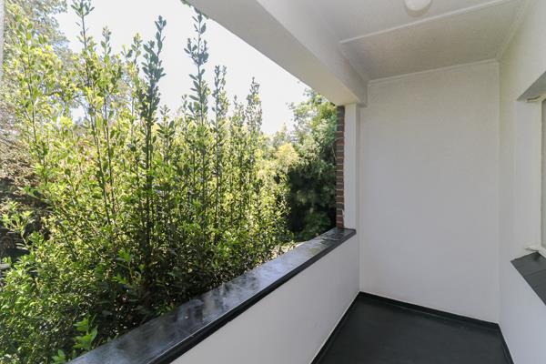 Both bedrooms are impressively spacious and include ample built-in cupboards. The main bedroom enjoys serene garden views, while the second bedroom, positioned just off the lounge, opens directly onto the open balcony creating a sense of privacy and versatility looking out over the garden.