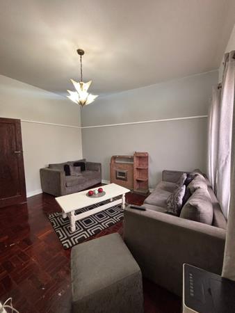 The kitchen has plenty of built-in cupboards and leads into the living arealounge and dining room. Spacious bedroom with a lot of built-in cupboards and wooden flooring. 1 x Bathroom with bath, basin and toilet with built-in cupboard and tiled floor.