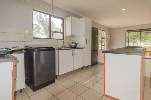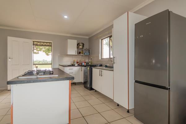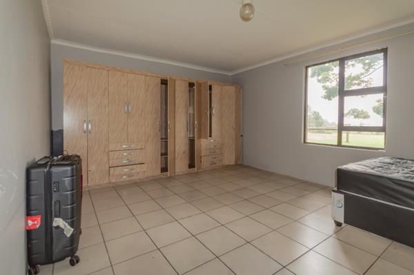The queen sized main bedroom features a walk in closet, providing ample storage, and the bathroom is neatly finished with tiled floors and modern fittings. A secure environment awaits with full fencing, an electric gate and electric fencing, plus borehole and water tanks contributing to dependable water supply.