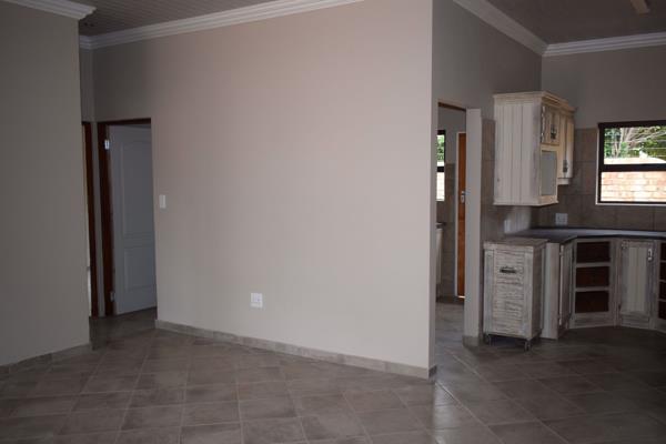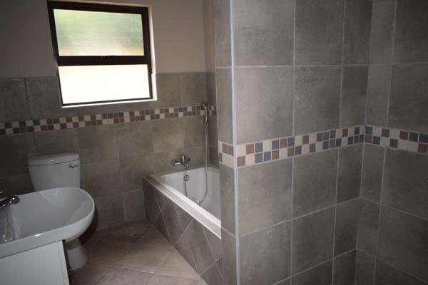 Two bathrooms, open-plan living area and kitchen with separate scullery and single garage with parking bay. Fully tiled