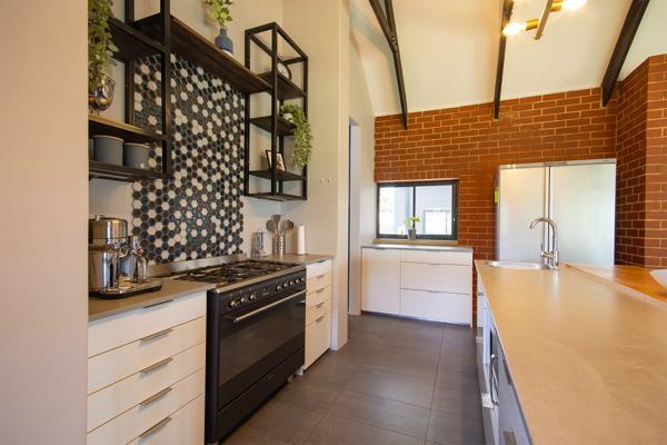 Industrial-style kitchen with: