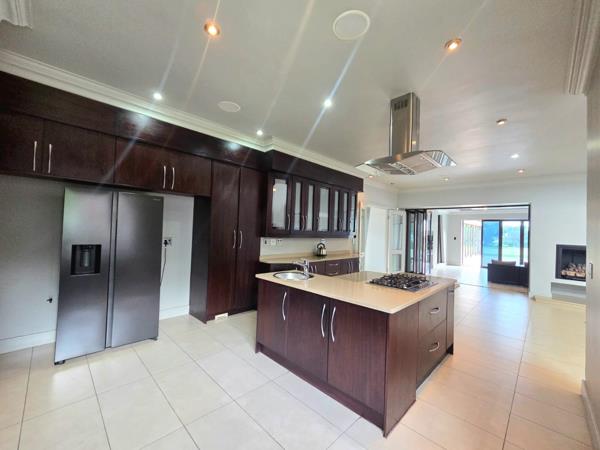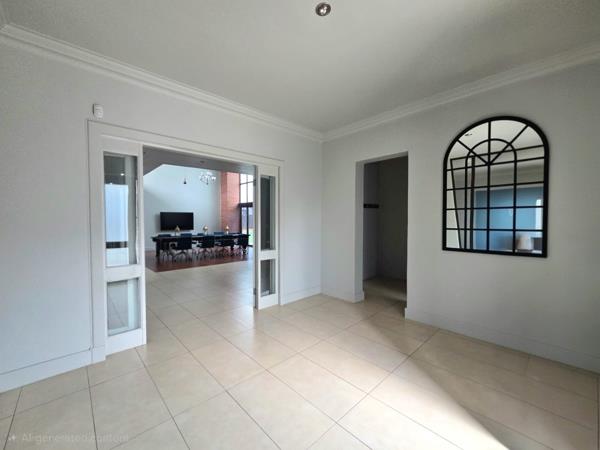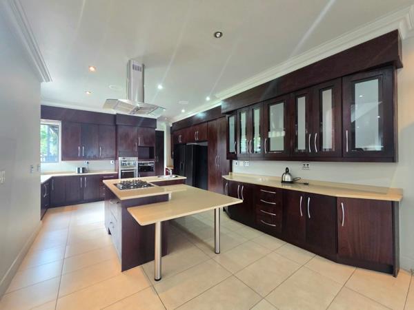 Step inside to a world of refined comfort. The home boasts an inviting entrance hall, two spacious lounges, and two elegant dining rooms, all designed with an open-plan layout. The well-appointed kitchen is ideal for culinary pursuits, complemented by a built-in bar for entertaining and a built-in braai for outdoor gatherings. Air conditioning ensures comfort throughout.