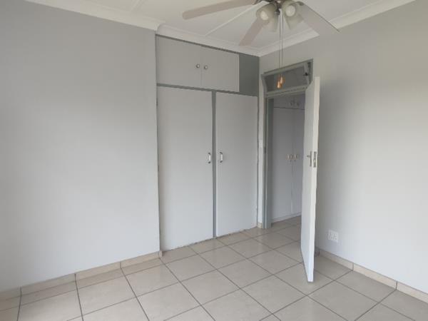 This neat apartment has 2 bedrooms, both with built-in wardrobes, an open-plan dining room and lounge and a glass sliding door leading out onto the balcony overlooking the complex communal garden. The bathroom has a bath, basin, shower and a separate toilet. The kitchen has sufficient cupboard space and is newly renovated and provides space for a washing machine, tumble dryer, or dishwasher. The unit has a single garage for parking. The river can be seen in the distance from the kitchen window. The apartment is in a neatly kept complex and within walking distance of the mall, hospital and school.