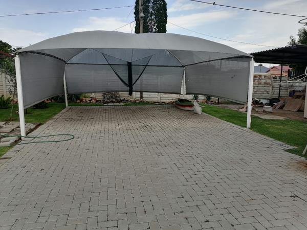Secure sliding gate entrance with shaded parking for 1 vehicle
