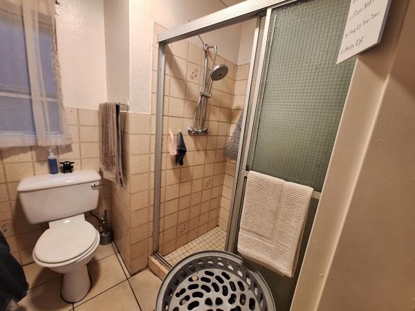 This unit offers an open-plan lounge and dining area, creating a comfortable living space. There are two bathrooms: the main bedroom features an en-suite with a shower, while the second is a guest bathroom with a bath.