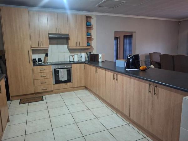 Generous open-plan Kitchen with breakfast-nook ,and elegantly intergrated with open-plan Lounge and fitted with high quality built-in cupboards,electric Stove, oven,extractor and granite tops