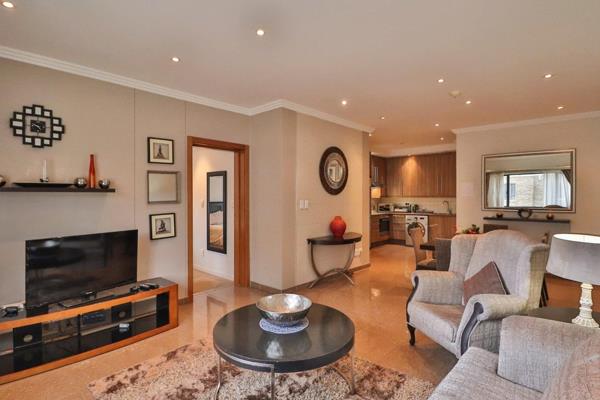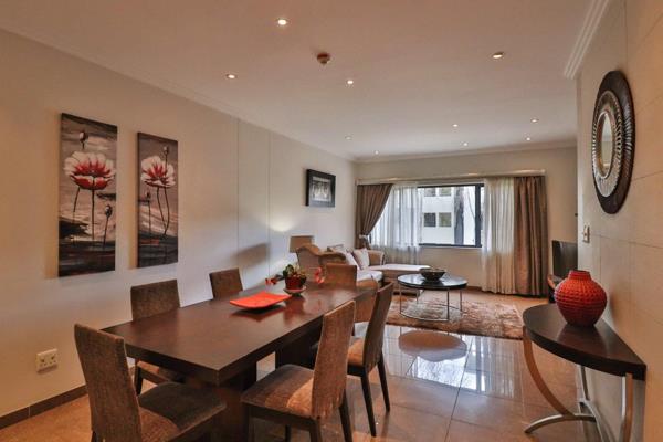 Tastefully furnished and warm apartment offers 2 spacious bedrooms with the main en-suite open plan. The unit is located in a very upmarket complex with top notch security. The 2nd bedroom leads to a balcony overlooking the Kingsley gardens. Soft lighting sets the stage for this interior theater with the most spectacular chefs kitchen and a dining area. Kitchen has Bosch oven and glass hob. Again all open plan. There is a very spacious lounge and dining room which comes fully furnished.