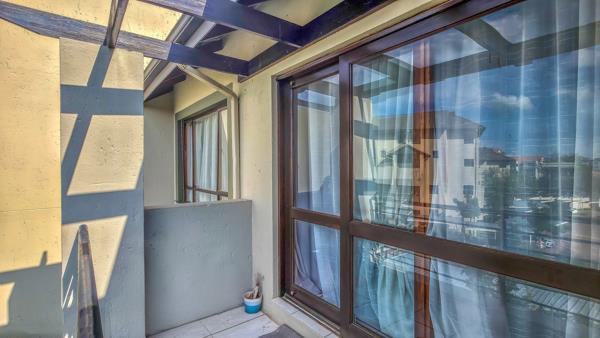 The open-plan layout is filled with natural sunlight, creating a warm and airy living space that opens onto the balcony.