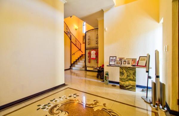 Step through the striking double-volume entrance hall, where soaring ceilings and an abundance of natural light create a dramatic and welcoming ambiance.