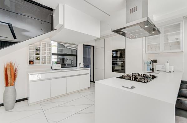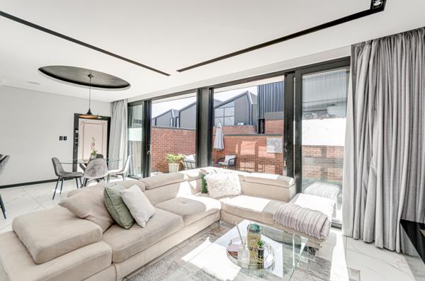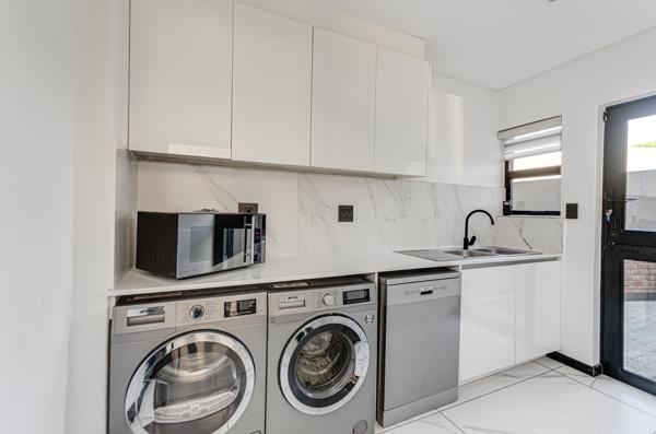 This property is the perfect home for young professionals and small families alike. On entry you are invited into an elegant and well-lit lounge and dining room thanks to all the natural light the property receives, with a smart fire place. Adjacent to the lounge and dining area is a well-equipped kitchen with all modern finishes and plenty of cupboard and counter space, it also features built in appliances and a gas stove. The property also features a scullery that fits three appliances and more cupboard space, also there is a beautiful guest bathroom downstairs.