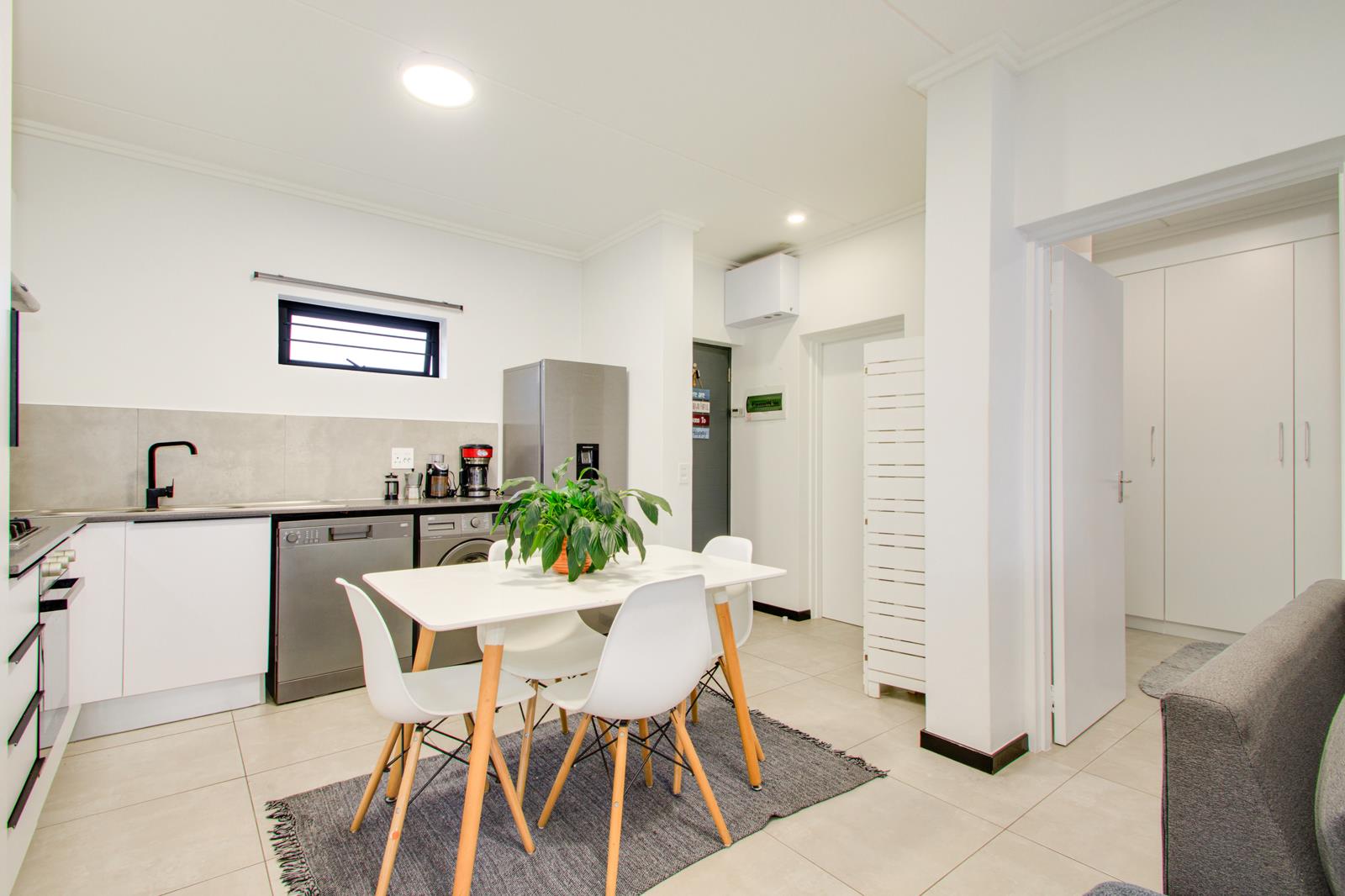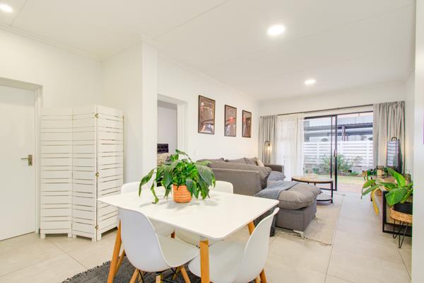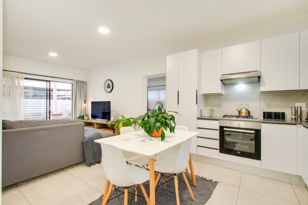 The apartment itself is thoughtfully designed with superior finishes and exceptional build quality. It includes a fully integrated inverter for uninterrupted power, gas hobs, and three eco-friendly kitchen appliances that combine functionality with sustainability. Energy-efficient living is further enhanced by an integrated heat pump for water heating, while pre-paid electricity meters allow for ease of management. Beautifully maintained indigenous gardens frame the estate, creating a tranquil backdrop to a stylish and convenient lifestyle.