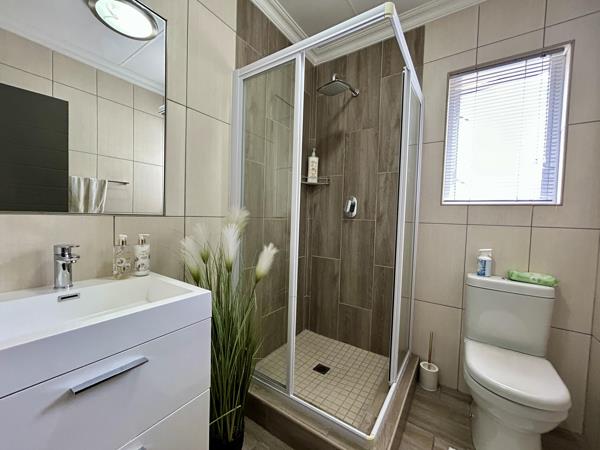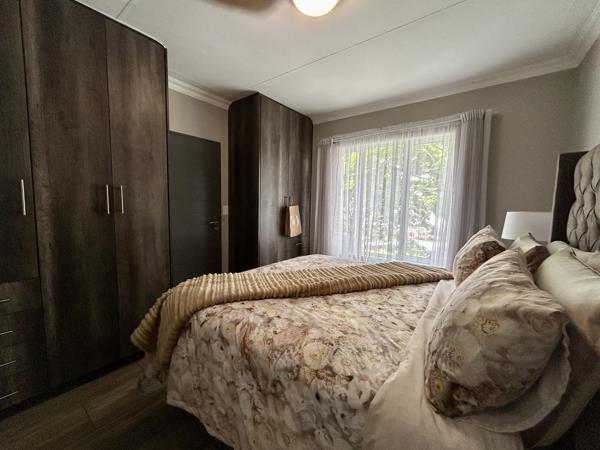 This modern 2-bedroom, 2-bathroom apartment in Broadacres offers contemporary living in a prime location. As you enter, youre welcomed by an open-plan kitchen with ample cupboard space, a gas stove, an electric oven, a double sink, a built-in wine rack, and space for two appliances. The spacious lounge features modern finishes and stylish light fittings, and opens onto a private balcony thats perfect for entertaining or enjoying a morning coffee.