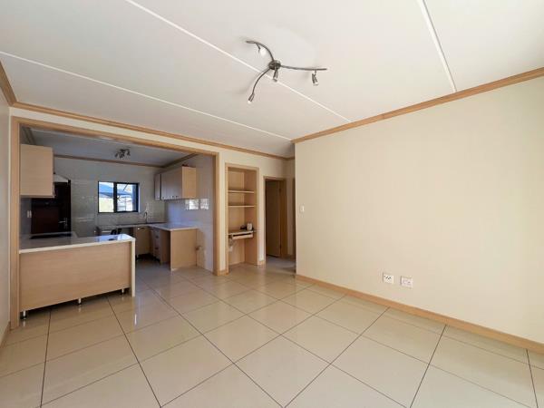 Discover comfortable living in this modern 2-bedroom, 1-bathroom apartment available for rent in a secure complex in Broadacres, Sandton. Designed with an open-plan layout, the residence seamlessly integrates a bright lounge and dining area, and a contemporary kitchen. The kitchen is well-appointed with light wood cabinetry, white countertops, a built-in oven, electric hob, and extractor fan, complemented by a convenient breakfast bar. Tiled flooring extends throughout the main living areas, enhancing the sense of space and ease of maintenance. The property also includes a versatile study nook offering additional functional areas.