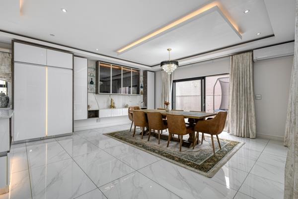 The open-plan kitchen flows effortlessly into a generous dining area. All the areas open onto a large covered patio overlooking a sparkling pool the perfect backdrop for elegant outdoor gatherings.